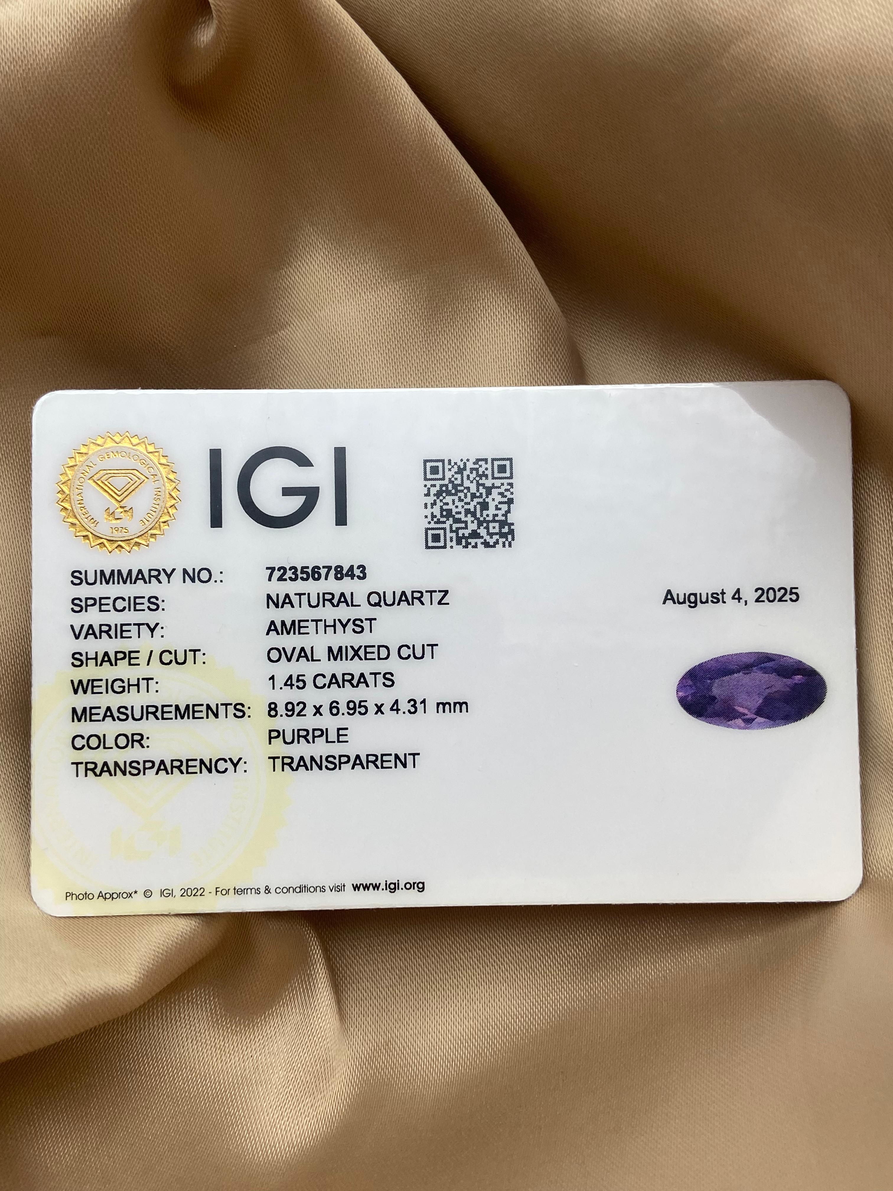 🔹 Gemstone: 100% natural Amethyst – IGI certified