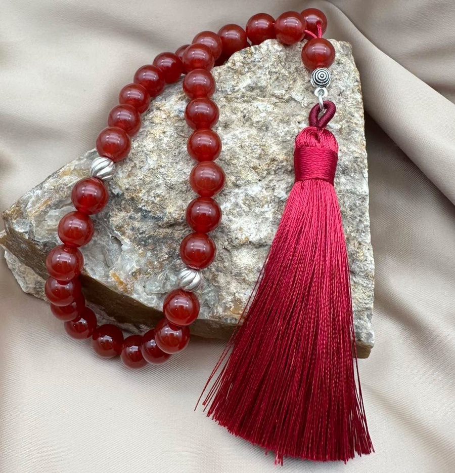 Natural Carnelian rosary with silver, each stone is carefully selected and hand-inspected for quality and consistency. The stones are precision cut for a smooth, uniform feel, making it suitable for daily use or collection.