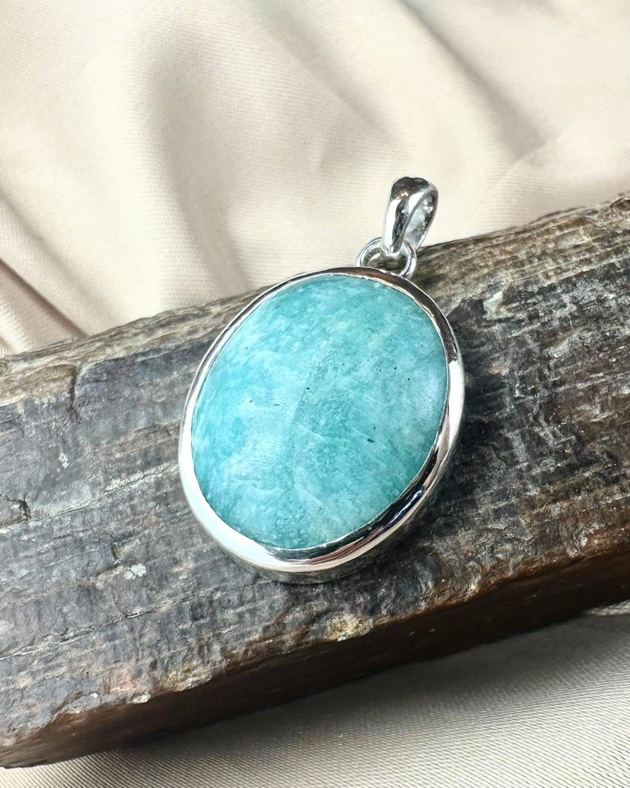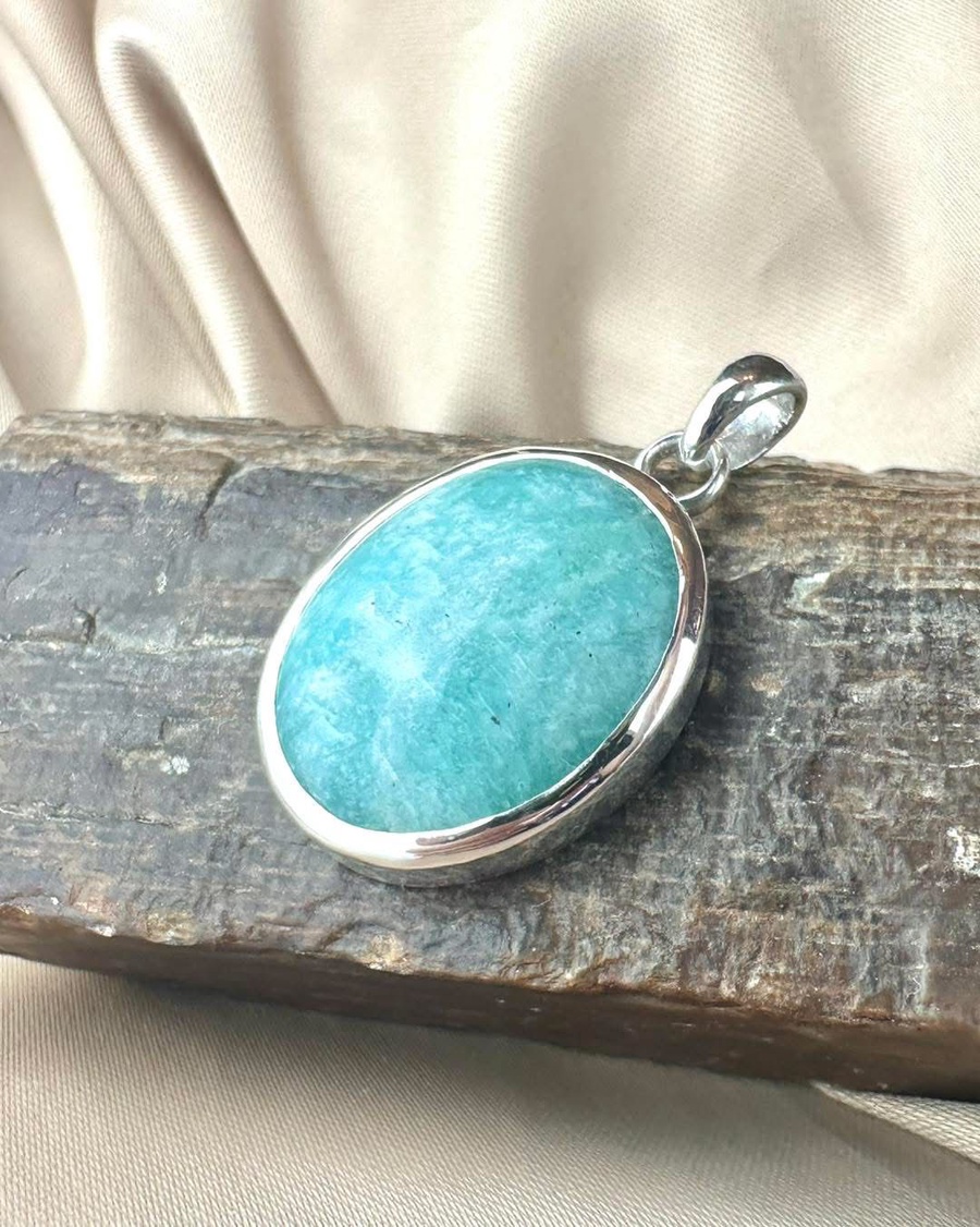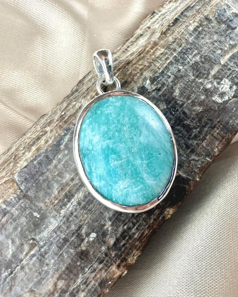 Own or gift Natural Amazonite Silver Pendant from Dokkana Gemstones. Expertly examined, guaranteed authenticity, and exceptional quality.