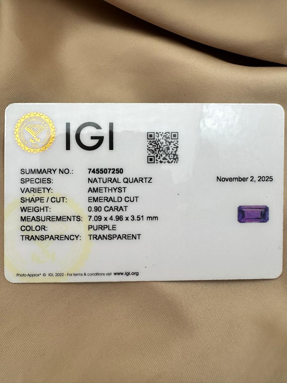✔ Natural Amethyst, IGI certified