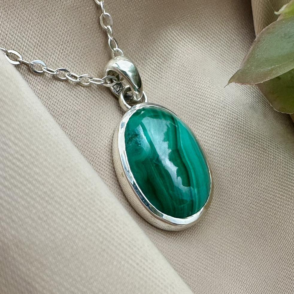 Own or gift Natural Malachite Silver Pendant from Dokkana Gemstones. Expertly examined, guaranteed authenticity, and exceptional quality.