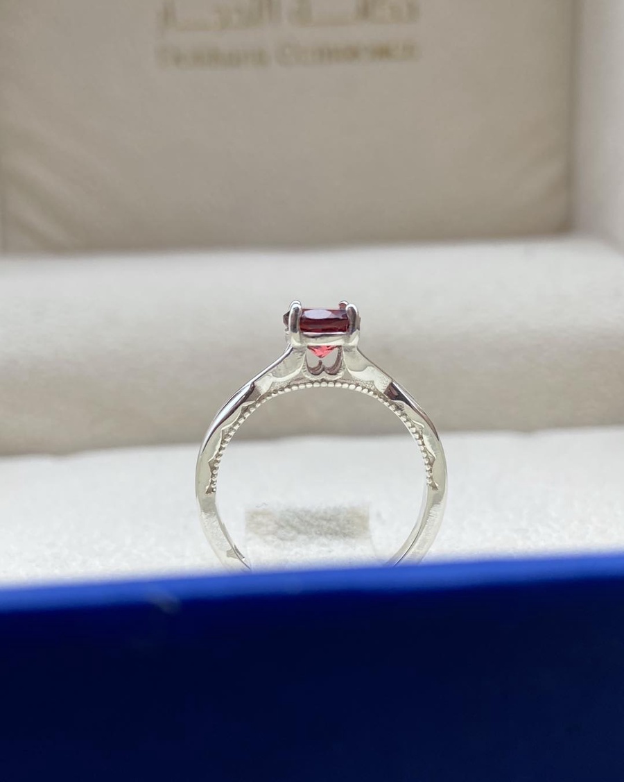 An elegant ring that highlights the rich beauty of a natural Garnet gemstone, admired for its deep purplish-red color and vivid brilliance. The clean, balanced design allows the gemstone’s natural character to stand out, paired with the refined finish of high-purity Swiss silver.