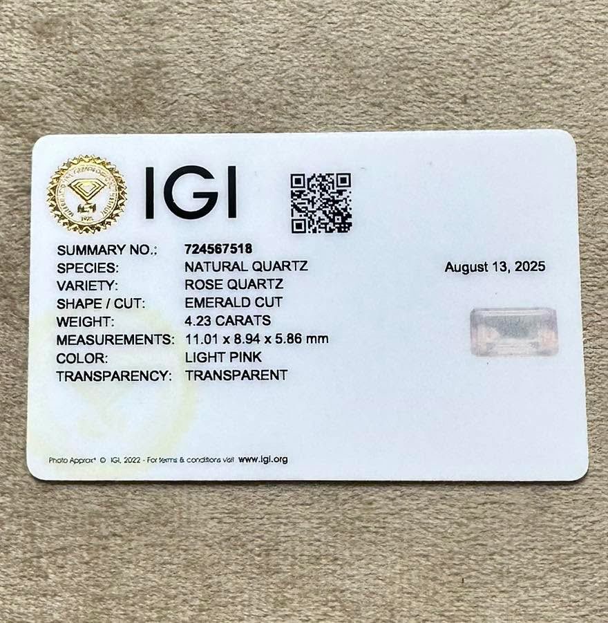 Rose Quartz is a pink variety of quartz, with its color attributed to trace elements such as titanium, iron, or manganese, and in some cases microscopic mineral inclusions. It has a Mohs hardness of 7, making it suitable for most jewelry applications with proper care.