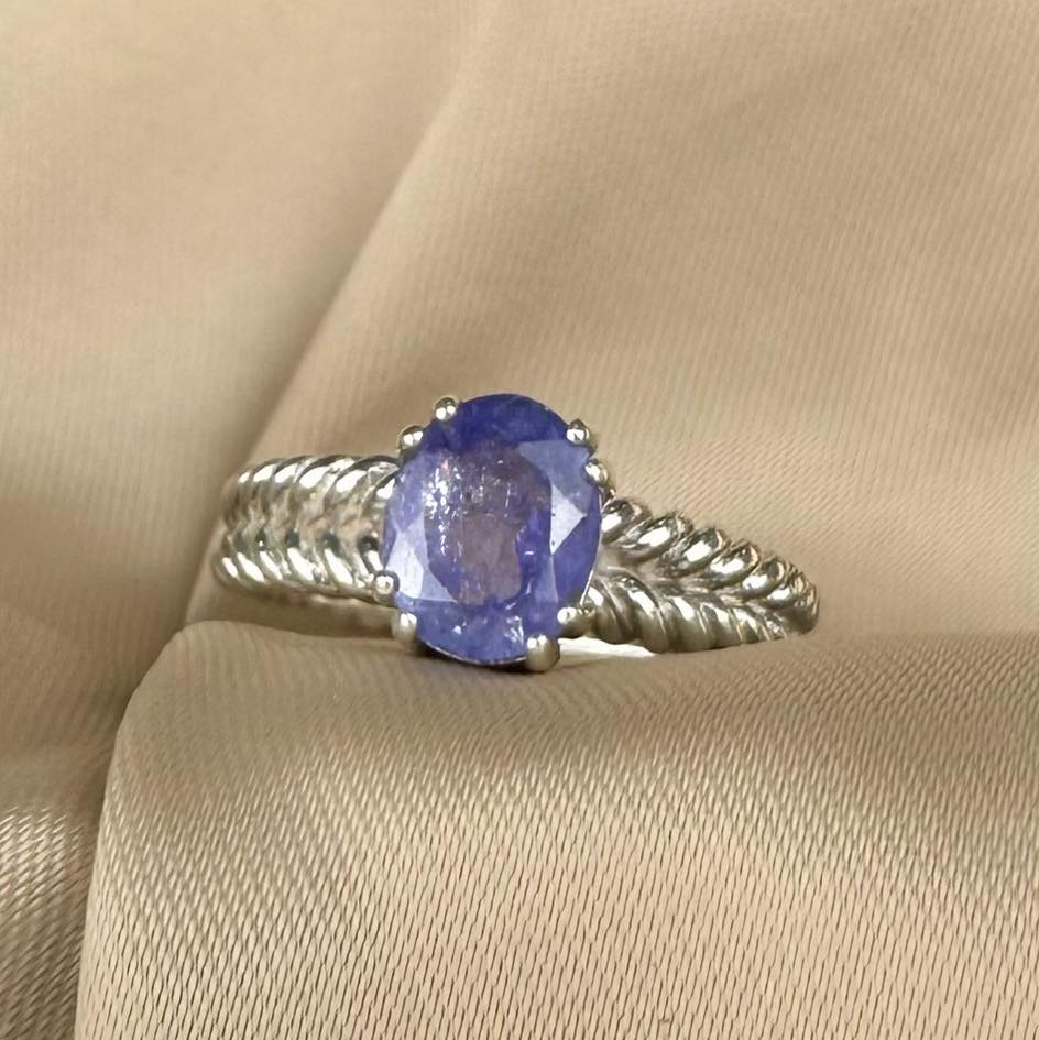 A natural Tanzanite ring, radiating vivid violet-blue brilliance. Crafted in Swiss 925 Silver with intricate details, this piece combines elegant design with timeless sophistication and comfortable wear.